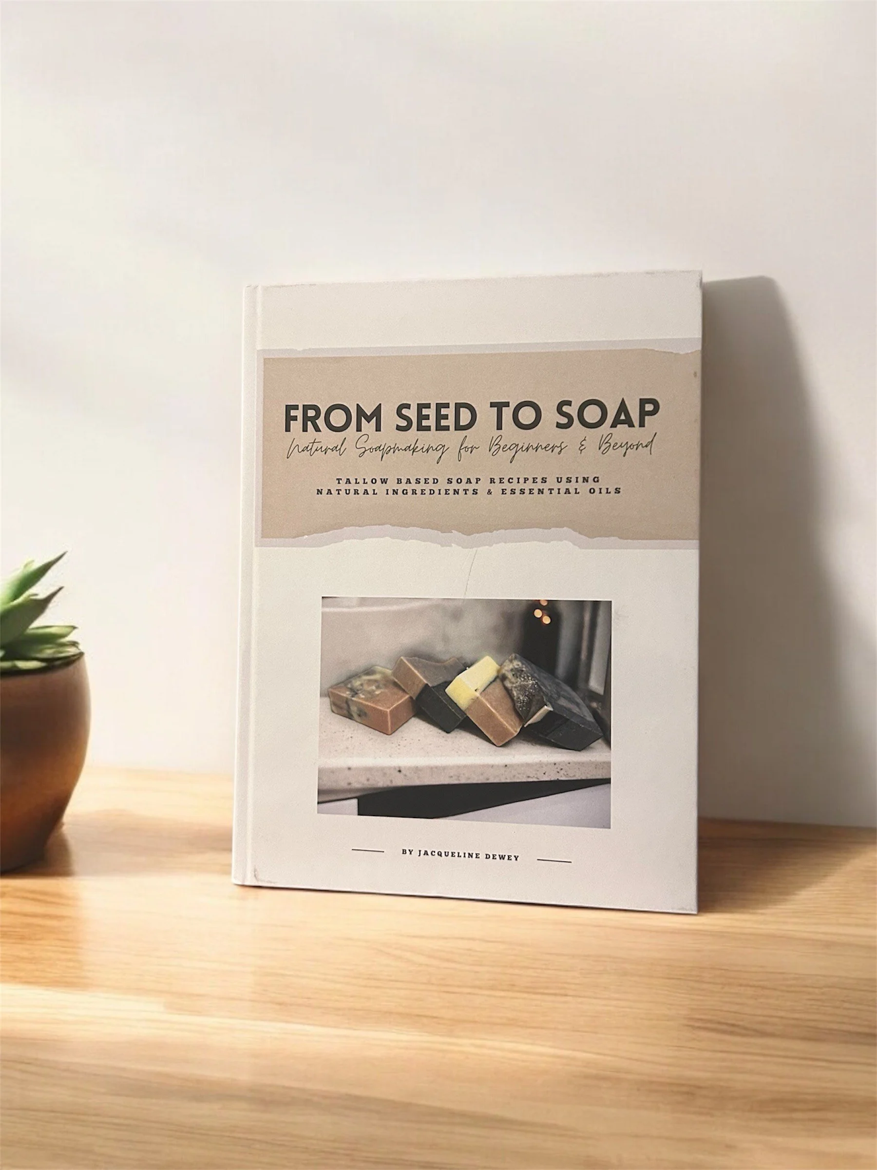 From Seed to Soap is a simple guide to making natural soap at home. I wrote this book to take the overwhelm out of soapmaking and help you feel confident using real, nourishing ingredients. Inside, you’ll find clear steps, easy-to-follow recipes, and the kind of practical tips I wish I had when I first started.